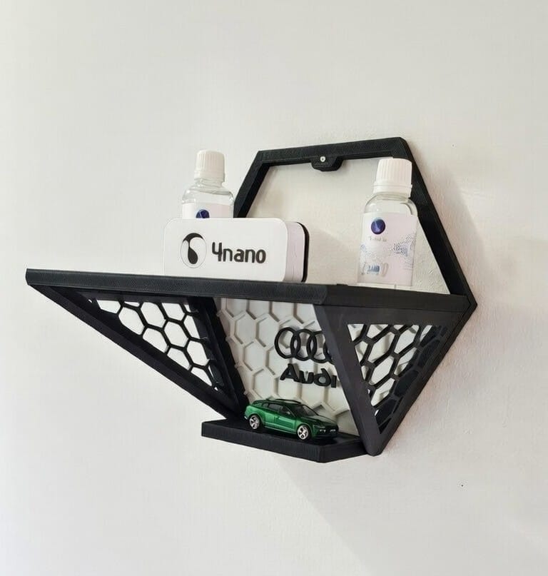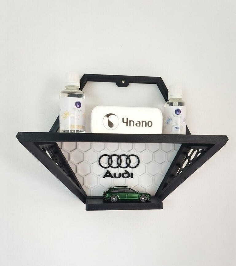 Dodajte svojemu prostoru edinstven avtomobilski pridih. Stenska dekorativna polica s sodobnim honeycomb (satovje) dizajnom je popolna izbira za vse ljubitelje avtomobilov, profesionalne detailing studie, avto salone ali garaže. Združuje estetski videz in praktično uporabnost – idealna je za razstavljanje in organizacijo detailing izdelkov, keramičnih premazov, voskov ali modelčkov vozil.